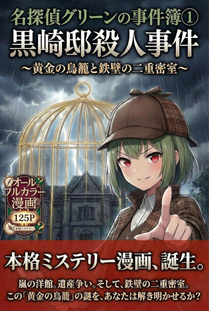 名探偵グリーンの事件簿① ~黄金の鳥籠と鉄壁の二重密室~: 本格ミステリー漫画誕生!グリーンからの挑戦状有り。オールフルカラー125Pが描く、かつてない没入感。【本格ミステリー】【フルカラー漫画】【謎解き】【密室殺人】【遺産相続】【女探偵】【読み切り】